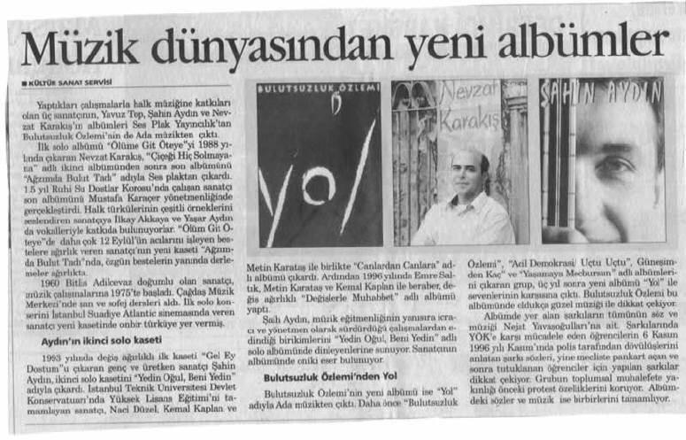 1990 yılında gönülden gönüle halk müziği korosunun şefliğini yapmaya başladı.2001 yılında koro şefliğinden ve Arif SAĞ müzik kursundan ayrıldı.1990’lı yıllarda Yavuz TOP halk müziği eğitim merkezinde canlardan canlara grubu ile (Şahin AYDIN, Naci DÜZEL Kemal KAPLAN, Metin KARATAŞ )ile halk müziği tavırları hakkında Yavuz TOP’un desteği ile 5 yılık bir çalışma yaptı. 1990’lı yıllarda ilk koro çalışması olan canlardan canlara grubunda yer aldı.