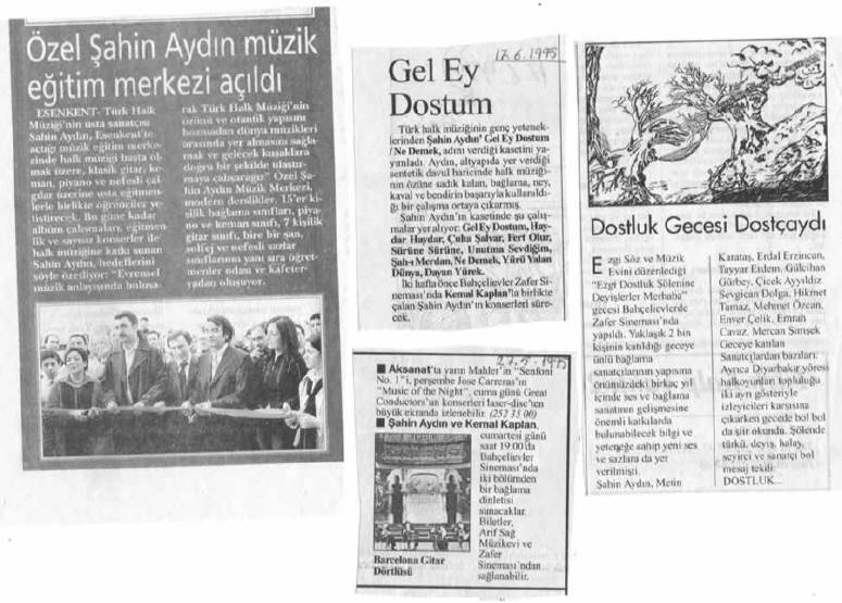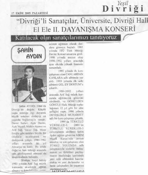 1993 yılında ilk solo kaseti olan “Gel Ey Dostum” adlı albümünü çıkardı.1996 da “Deyişlerle Muhabbet” adlı koro çalışmasını ve 1998 de ikinci solo albümü olan YEDİN OGUL BENİ YEDİNi çıkartı. 1999 – 2000 – 2001’de Türkülü yürekler grubu ile 3 albüm çalışması yaptı. 1989 yılında kasetlerde bağlama çalmaya başladı. Bir çok kasete (500 e yakın) bağlama,şelpe,cura ve vokal olarak eşlik etti. 30'a yakın kasete yönetmenlik yaptı yurtiçi ve yurt dışında bir çok konserlere ve dinletilere katıldı. Halk müziğinde icracı ve eğitmen olarak müzik hayatını sürdürmekte, müziğimizin gelecek kuşaklara daha doğru elden ulaşması için prensip olarak kabul ettiği eğitmenliğine ASEM (Avcılar) Müzik kursunda iki yıl süreyle sürdürdü. (2001 – 2003) 2003 yılında Türkü yolunda adlı koro çalışması ile tekrar Türkü yolunun yolcularına merhaba dedi. 2003 yılında kendi adına açmış oldugu ŞAHİN AYDIN MÜZİK EĞİTİM MERKEZİnde bir çok alanda Bağlama ,Piyano,Gitar, Keman ,Ud,Nefesli Sazlar, Şan, Konservatuar hazırlık, ,Halk oyunları gibi dallarda eğitim vermeye devam etmekte. Halk müziği ile ilgili Türküler -Deyişler -Semahlar adlı bir kitap çalışması bulunmaktadır. Koca çınarın dallarının geceye kafa tutuşu gibi inadına Türkü yolunda yeni yolcularla tanışmaya, kültürü paylaşmaya ve kültürümüzü vazgeçilmezler arasına sokmaya devam etmektedir.