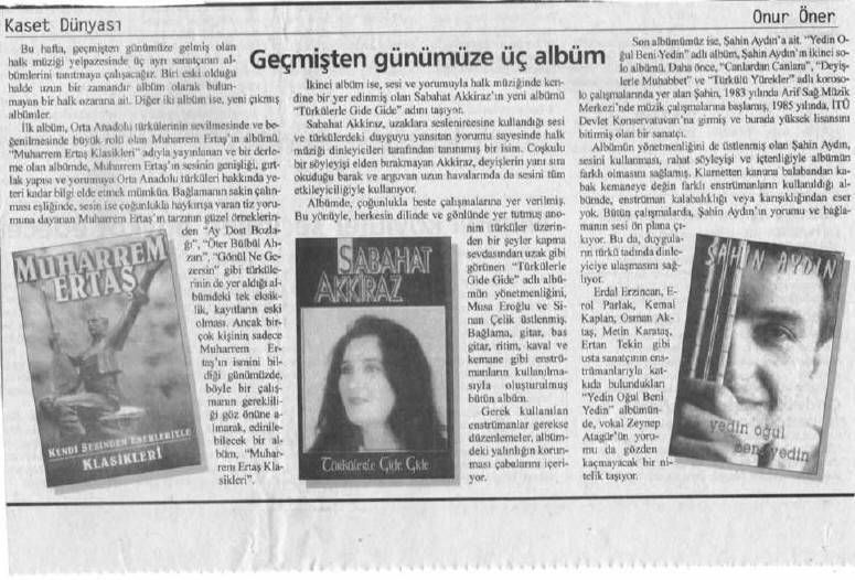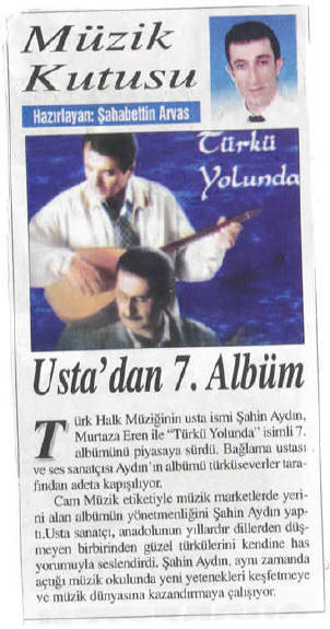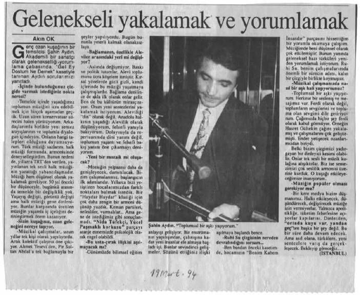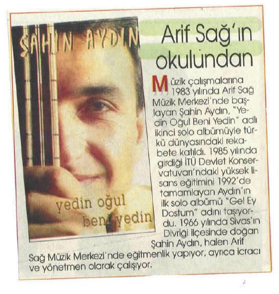 1993 yılında ilk solo kaseti olan “Gel Ey Dostum” adlı albümünü çıkardı.1996 da “Deyişlerle Muhabbet” adlı koro çalışmasını ve 1998 de ikinci solo albümü olan YEDİN OGUL BENİ YEDİNi çıkartı. 1999 – 2000 – 2001’de Türkülü yürekler grubu ile 3 albüm çalışması yaptı. 1989 yılında kasetlerde bağlama çalmaya başladı. Bir çok kasete (500 e yakın) bağlama,şelpe,cura ve vokal olarak eşlik etti. 30'a yakın kasete yönetmenlik yaptı yurtiçi ve yurt dışında bir çok konserlere ve dinletilere katıldı. Halk müziğinde icracı ve eğitmen olarak müzik hayatını sürdürmekte, müziğimizin gelecek kuşaklara daha doğru elden ulaşması için prensip olarak kabul ettiği eğitmenliğine ASEM (Avcılar) Müzik kursunda iki yıl süreyle sürdürdü. (2001 – 2003) 2003 yılında Türkü yolunda adlı koro çalışması ile tekrar Türkü yolunun yolcularına merhaba dedi. 2003 yılında kendi adına açmış oldugu ŞAHİN AYDIN MÜZİK EĞİTİM MERKEZİnde bir çok alanda Bağlama ,Piyano,Gitar, Keman ,Ud,Nefesli Sazlar, Şan, Konservatuar hazırlık, ,Halk oyunları gibi dallarda eğitim vermeye devam etmekte. Halk müziği ile ilgili Türküler -Deyişler -Semahlar adlı bir kitap çalışması bulunmaktadır. Koca çınarın dallarının geceye kafa tutuşu gibi inadına Türkü yolunda yeni yolcularla tanışmaya, kültürü paylaşmaya ve kültürümüzü vazgeçilmezler arasına sokmaya devam etmektedir.